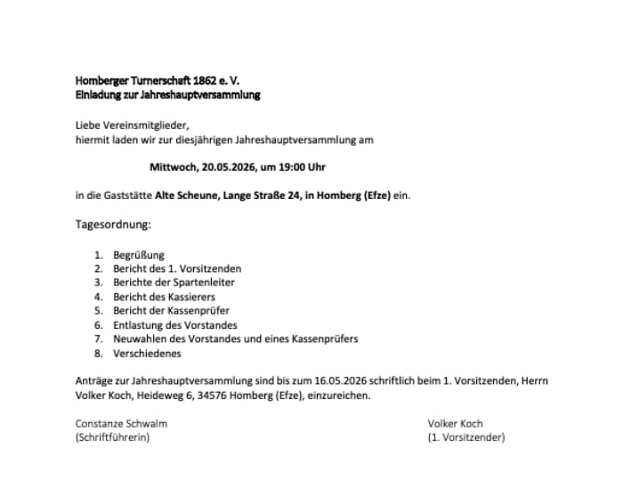 Einladung zur Jahreshauptversammlung
